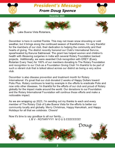 and recognition to our Club as a Foundation Giving Club! I'm thankful to be part of