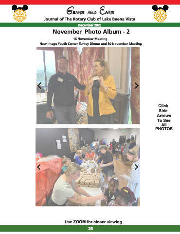 Gears and Ears Journal of The Rotary Club of Lake Buena Vista December 2023 November Photo Album - 2 16 November Meeting New Image Youth Center Turkey Dinner and 30 November Meeting Click Side Arrows To See All PHOTOS Use ZOOM for closer viewing. 25