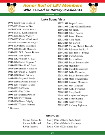 1985-1986 Harold K Johnson 2011-2012 David Brinckerhoff