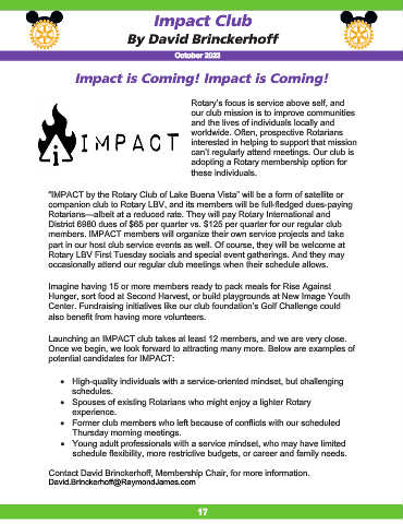 “IMPACT by the Rotary Club of Lake Buena Vista” will be a form of satellite or