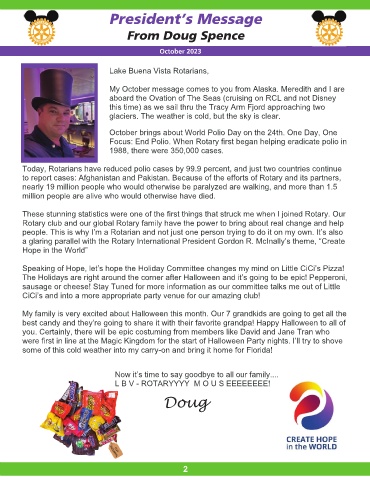 Hope in the World” a glaring parallel with the Rotary International President Gordon R. McInally’s theme, “Create