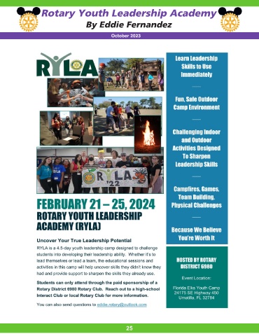 Rotary Youth Leadership Academy By Eddie Fernandez October 2023 25