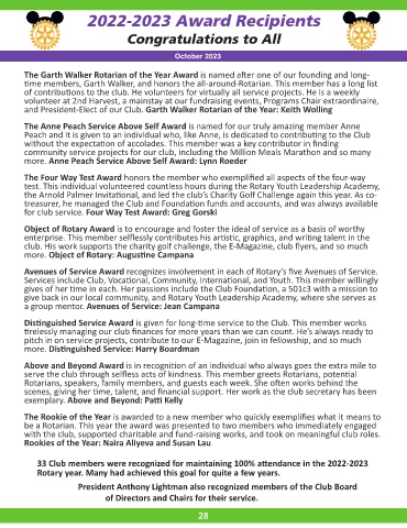 and President-Elect of our Club. Garth Walker Rotarian of the Year: Keith Wolling