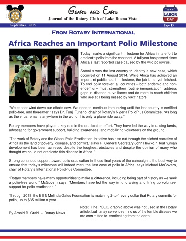 a polio-free world,” McGovern says. “Members have led the way in fundraising and lining up volunteer