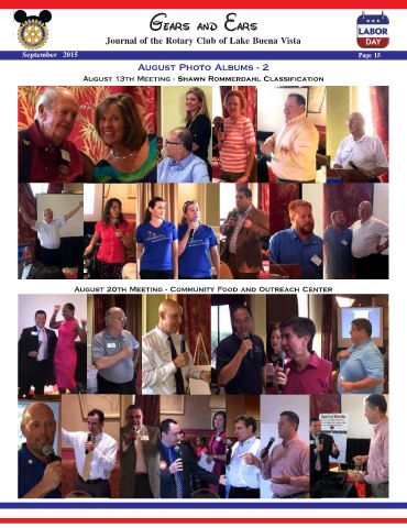 Gears and Ears Journal of the Rotary Club of Lake Buena Vista December 2014 2015 Page 15 September Page 15 August Photo Albums - 2 August 13th Meeting - Shawn Rommerdahl Classification August 20th Meeting - Community Food and Outreach Center