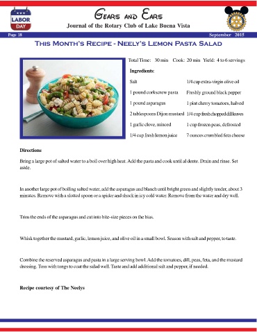 This Month’s Recipe - Neely’s Lemon Pasta Salad
