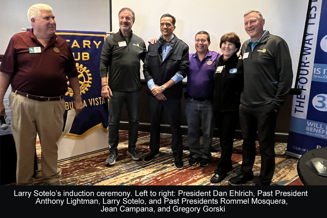 On 13 November 2025, Larry Sotelo, sponsored by Anthony Lightman, was inducted into our club by President Dan Ehrlich and a group of past presidents.